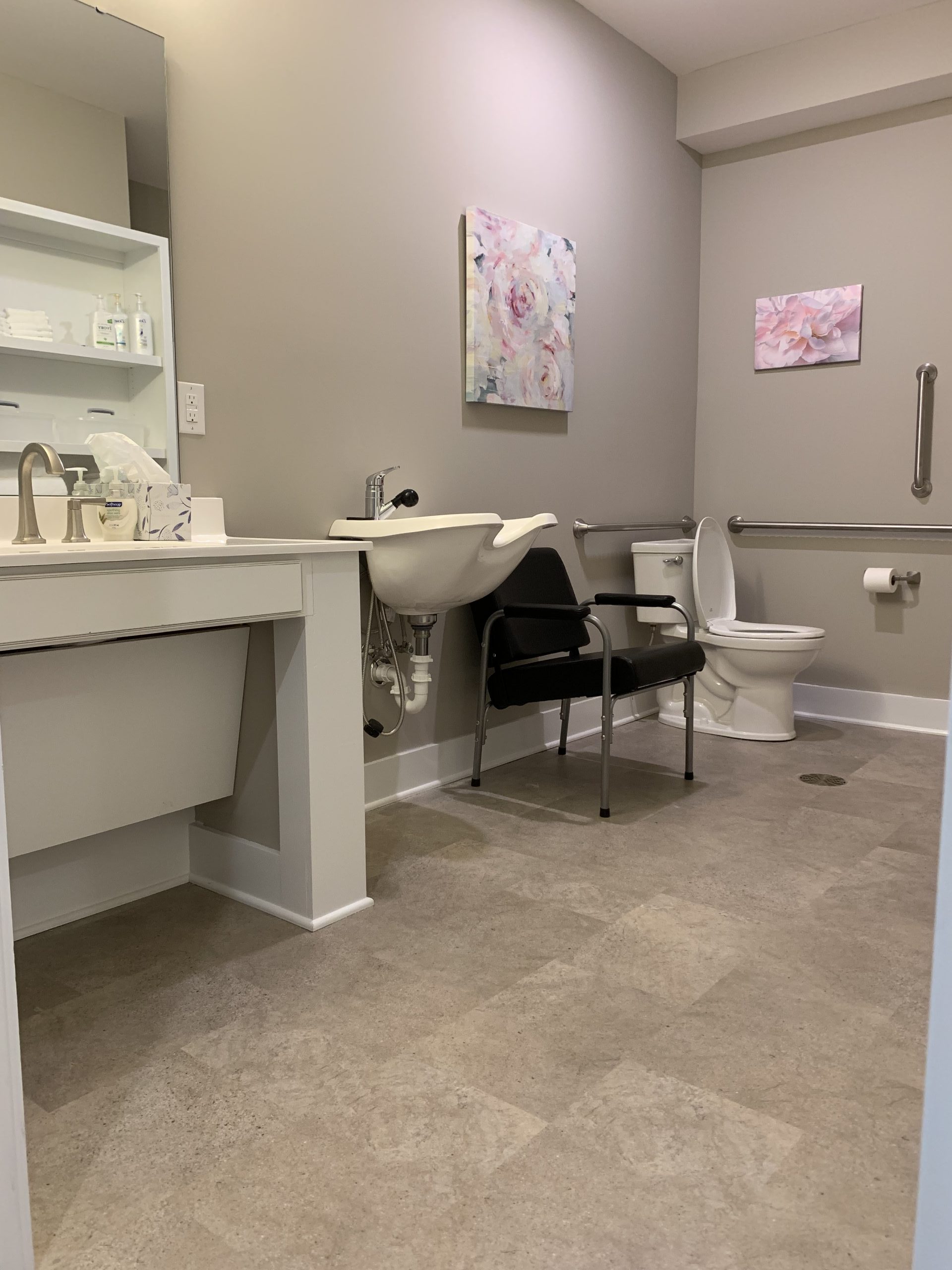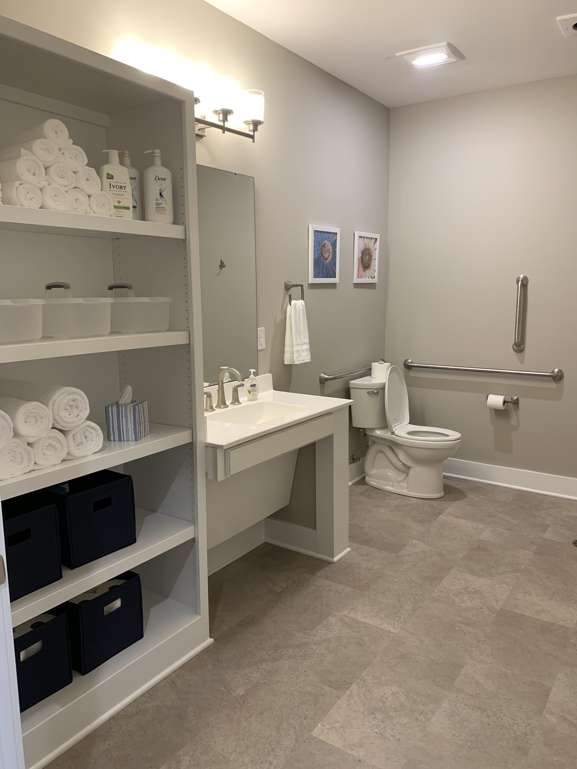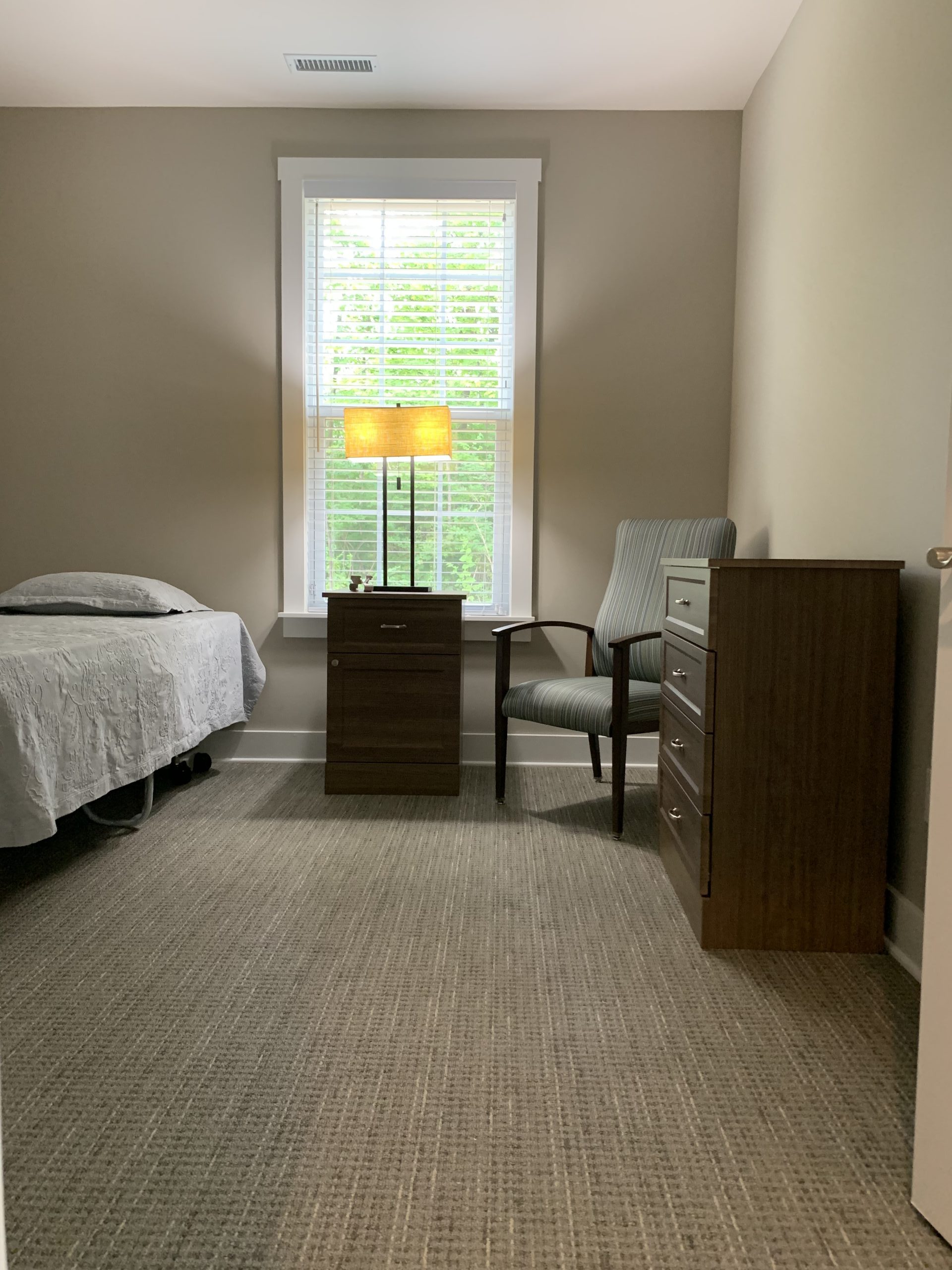 This facility is geared towards individuals that are affected by dementia or Alzheimer’s. Each facility only houses up to 10 individuals on a full-time basis with around the clock professional staff. The thought was having a “home” setting would be most beneficial for the patient to make the transition as easy and comfortable as possible. I was not the main designer on this project, however, I worked next to the lead designer for all the material selections. There were very specific parameters that we needed to work within when making selections. The fist facility was such a hit that the available rooms were purchased and spoken for before construction was even completed. There are more of these facilities in the greater Indianapolis area with all the same material selections.
