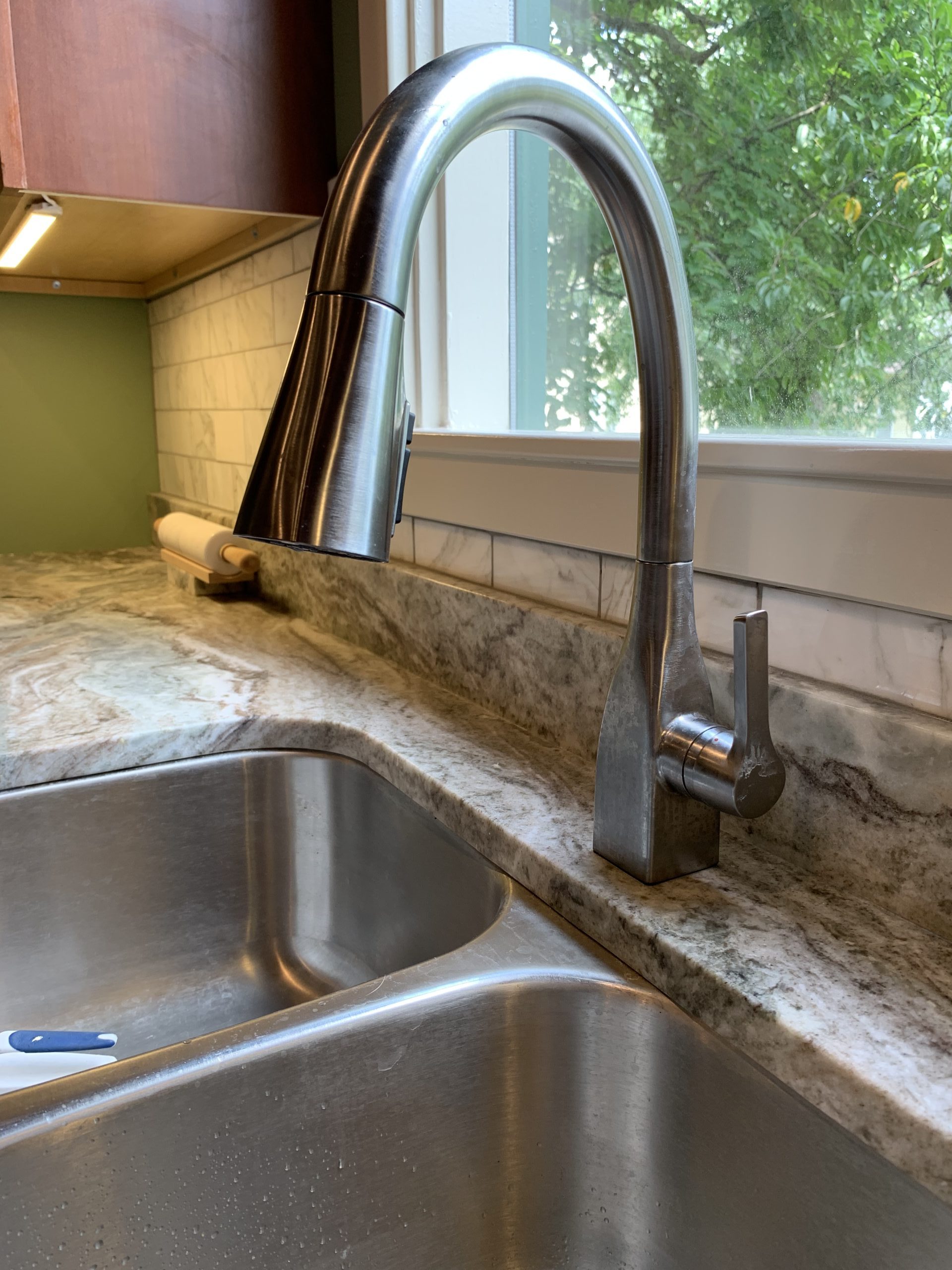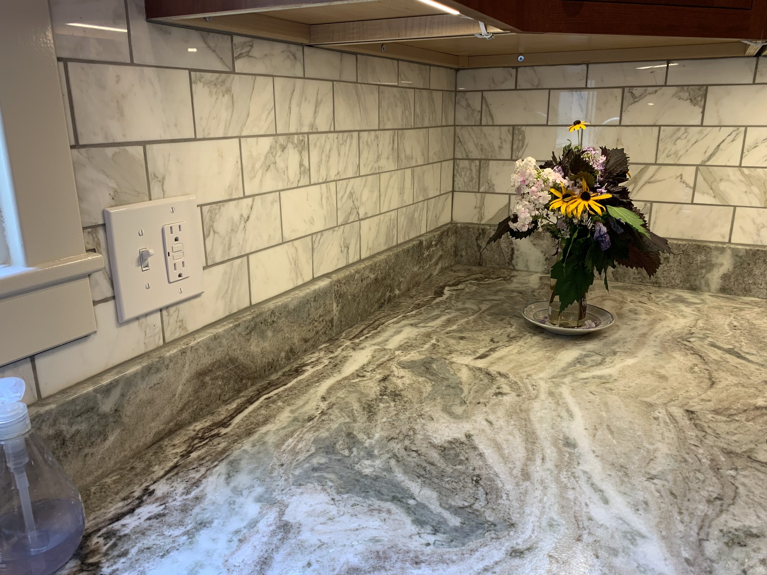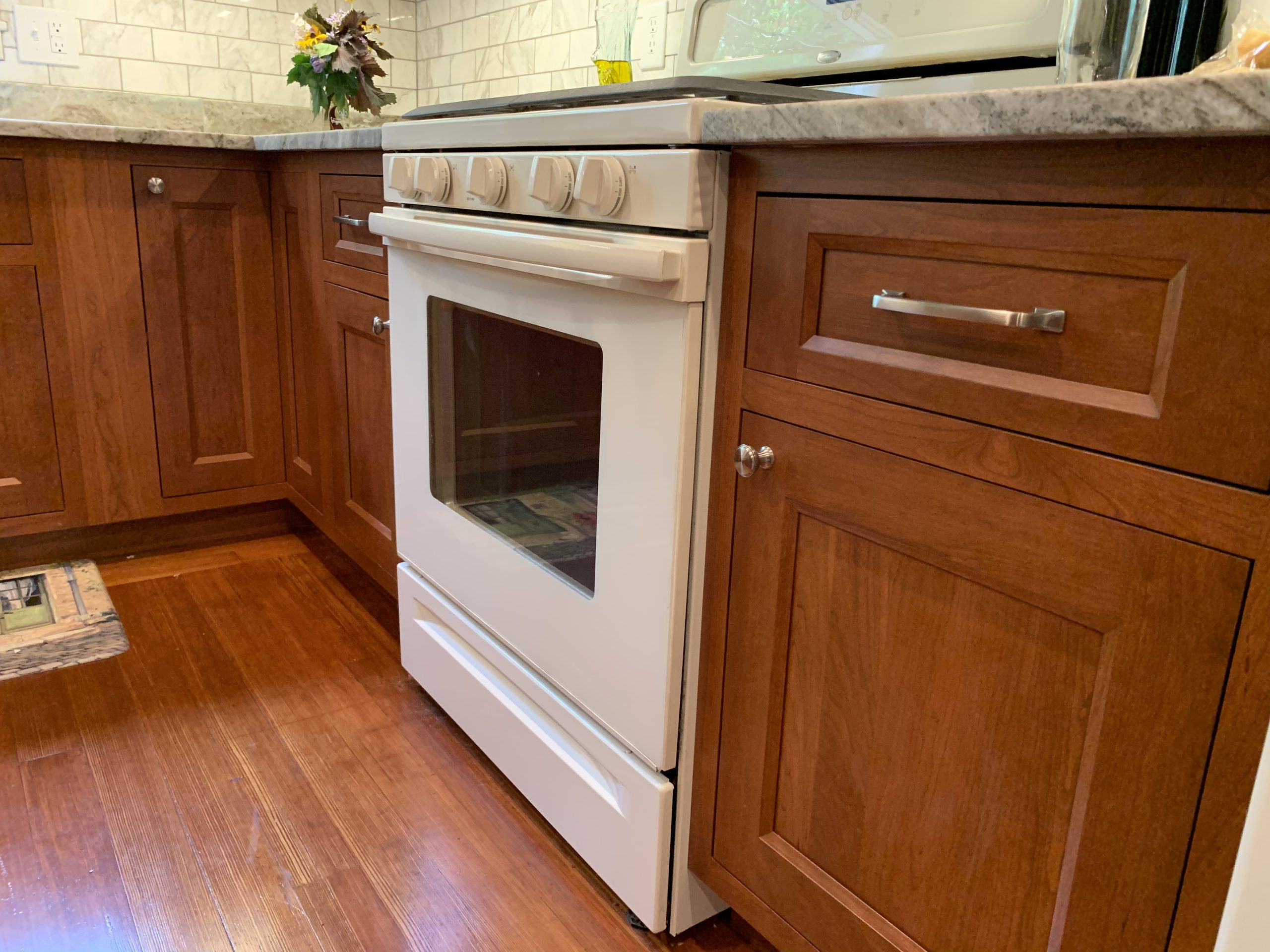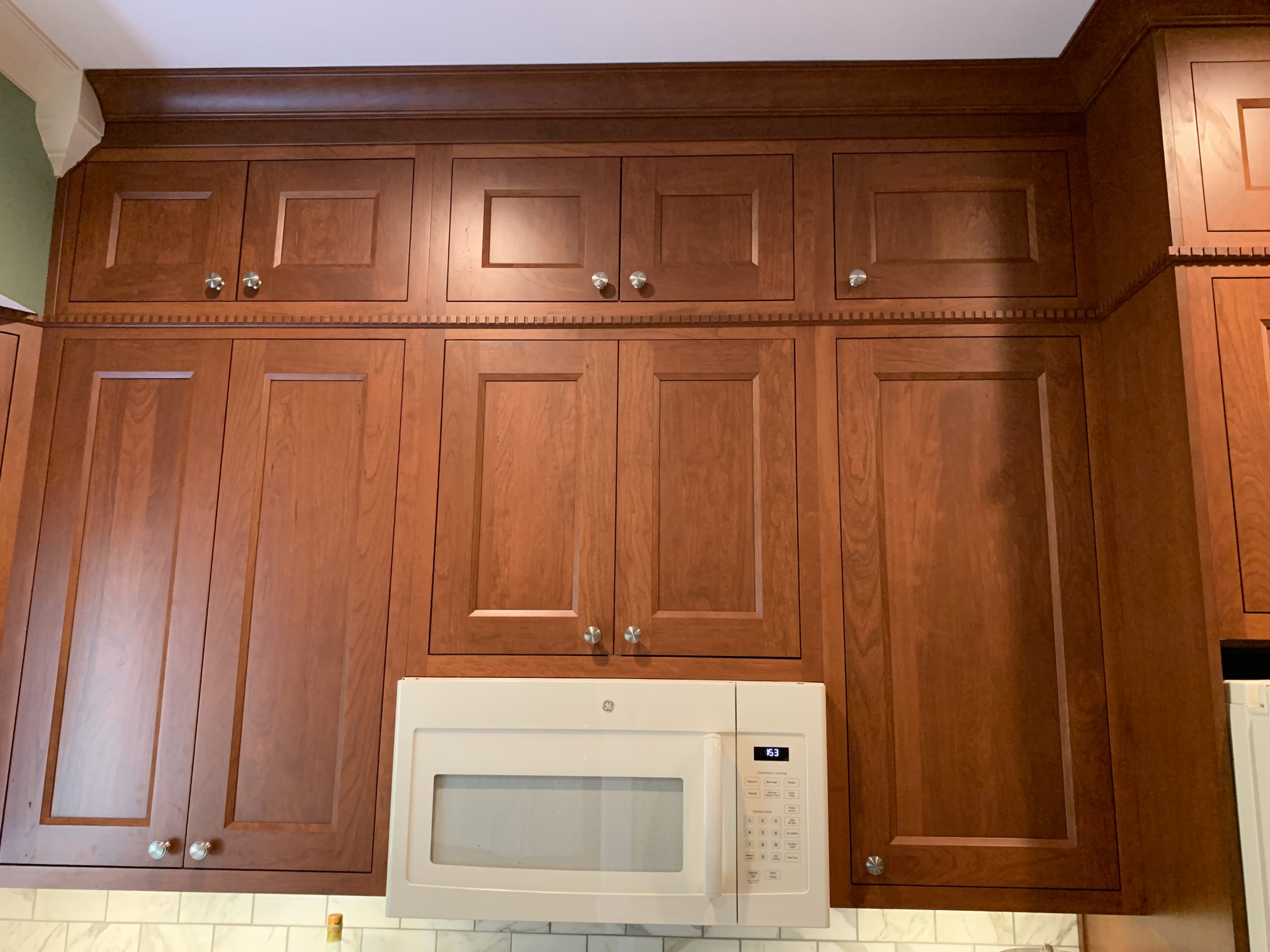 This project was a house that was built in the early 1900’s that the clients were in the process of restoring while bringing it into the 21’s century with many of todays modern amenities. They wanted to keep with the architectural integrity of the home and made beautiful material selections doing just that. The lady of the home really wanted an island but didn’t feel there was enough room for that. A custom island was crafted just for her space to fit the space correctly while still providing all the function she needed as well. The clients selected these Cherry red inset cabinets to mimic an original built in on the other side of the kitchen. They paired it with this beautiful fantasy brown marble counter tops and toped it off with a marble backsplash. The natural veining and movement in the counter tops made a perfect topographical map for her son and his army figurines. She is now able to work in her kitchen while her children entertain themselves or do their homework at the island or comfortably sit at eating area.